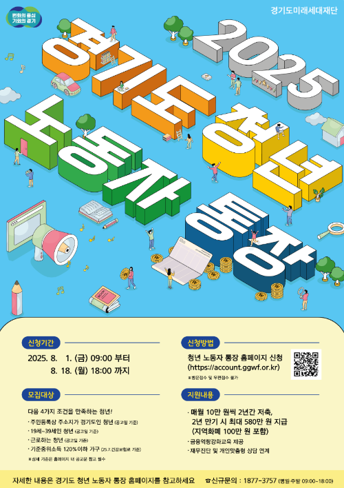 - 신청 방법: ‘경기도 청년 노동자 통장’ 누리집에서 온라인 신청만 가능
