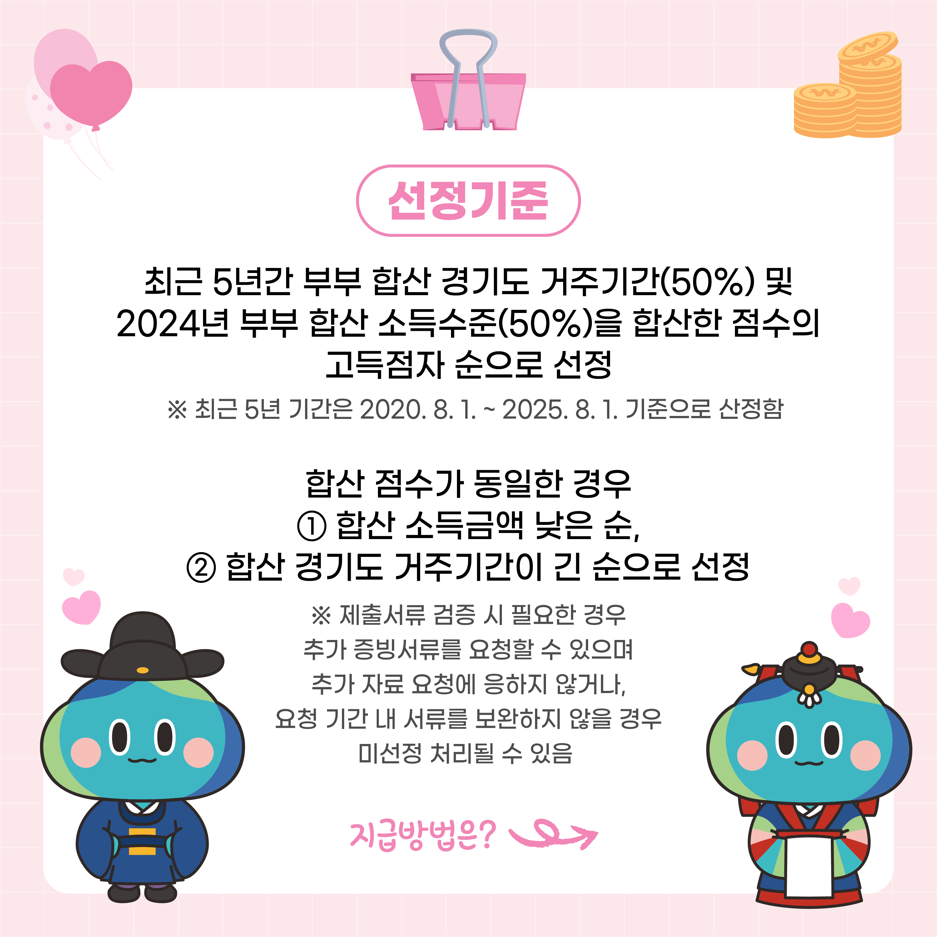 - 부부 모두가 경기도에 주민등록이 되어 있어야 함